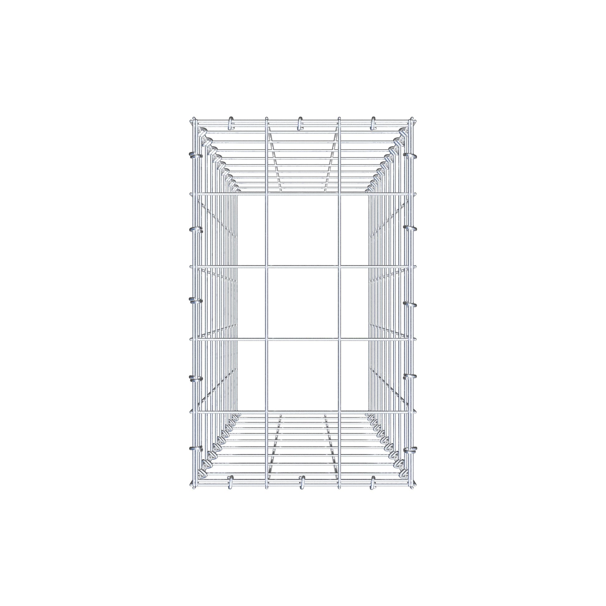 - Hinweis: kein eigenes Bodengitter – die Verbindung erfolgt über das Deckelgitter und den Verschluss der unteren Gabione.