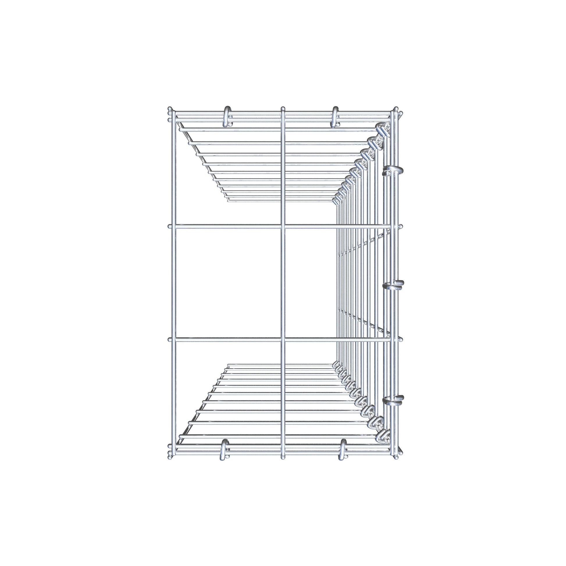 - Hinweis: kein eigenes Bodengitter und kein eigenes Stirngitter – die Verbindung erfolgt über das Deckelgitter und den Verschluss der unteren Gabione sowie den Verschluss der seitlichen Gabione.