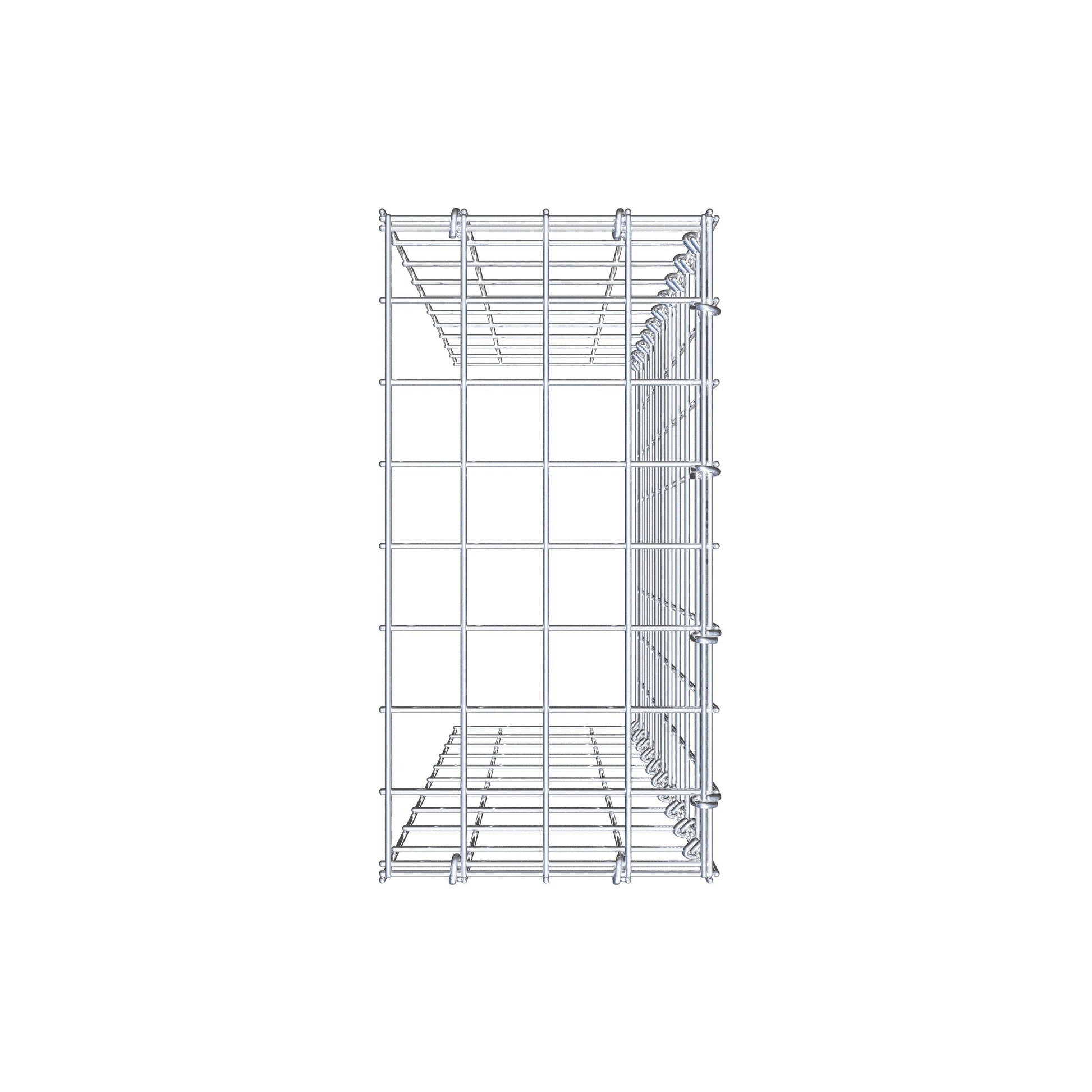 - Hinweis: kein eigenes Bodengitter und kein eigenes Stirngitter – die Verbindung erfolgt über das Deckelgitter und den Verschluss der unteren Gabione sowie den Verschluss der seitlichen Gabione.