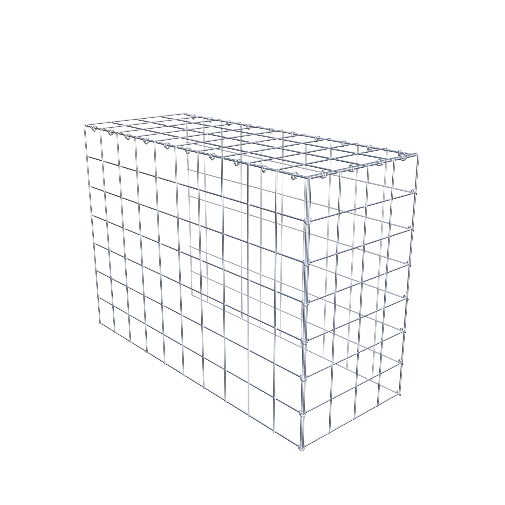 - Hinweis: kein eigenes Bodengitter und kein eigenes Stirngitter – die Verbindung erfolgt über das Deckelgitter und den Verschluss der unteren Gabione sowie den Verschluss der seitlichen Gabione.