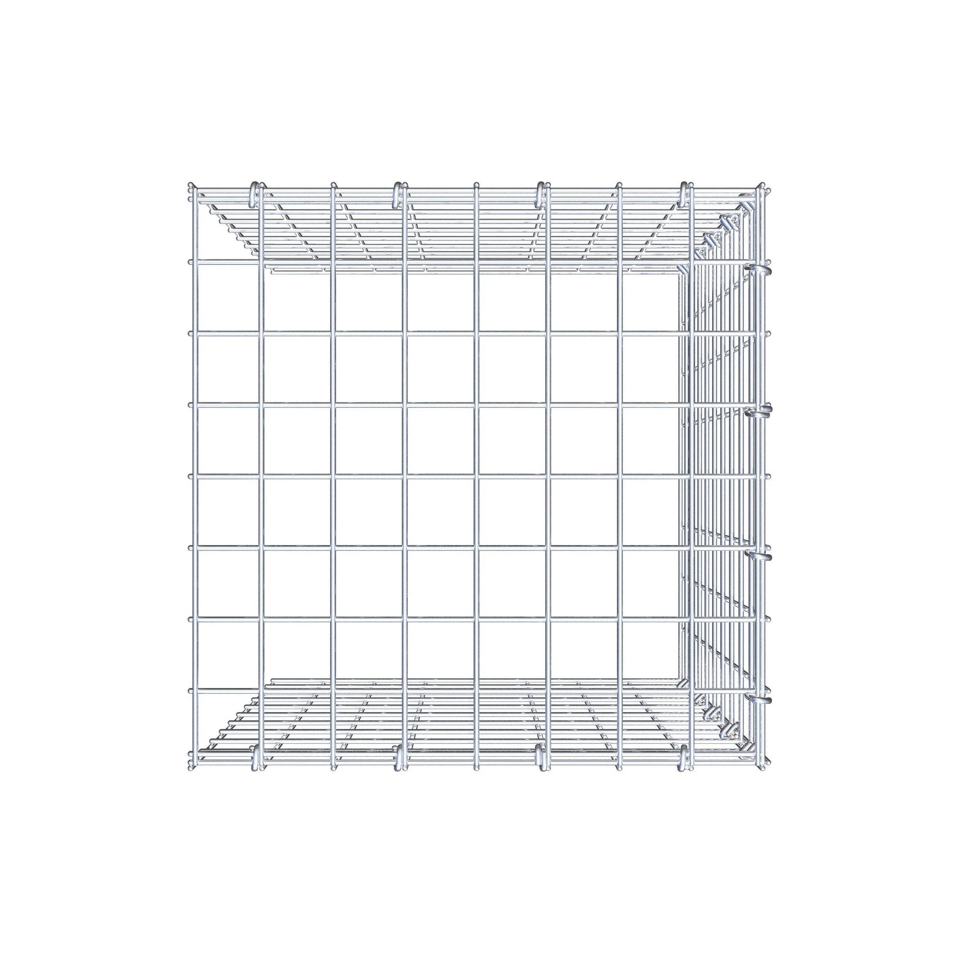 - Hinweis: kein eigenes Bodengitter und kein eigenes Stirngitter – die Verbindung erfolgt über das Deckelgitter und den Verschluss der unteren Gabione sowie den Verschluss der seitlichen Gabione.