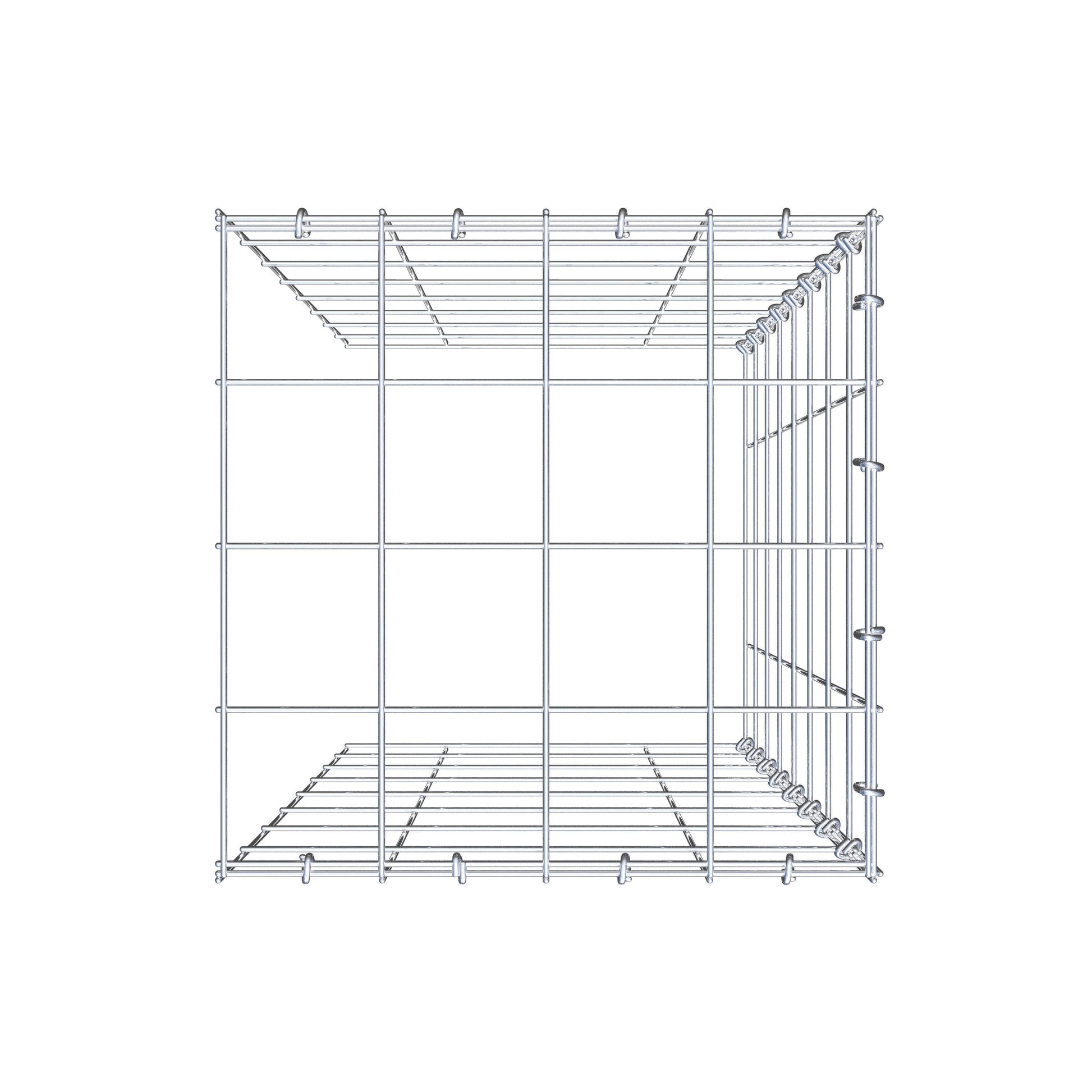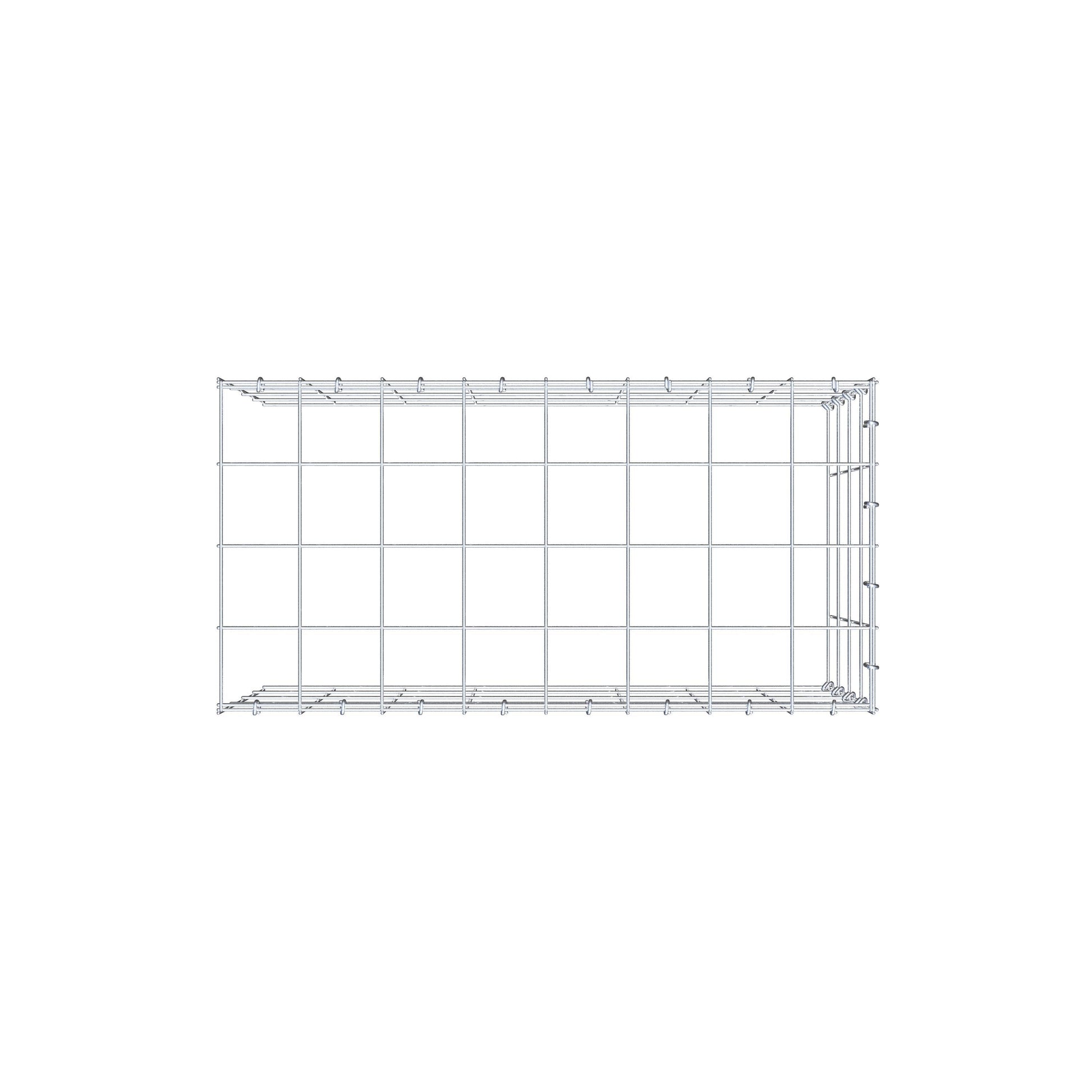 - Hinweis: kein eigenes Bodengitter und kein eigenes Stirngitter – die Verbindung erfolgt über das Deckelgitter und den Verschluss der unteren Gabione sowie den Verschluss der seitlichen Gabione.