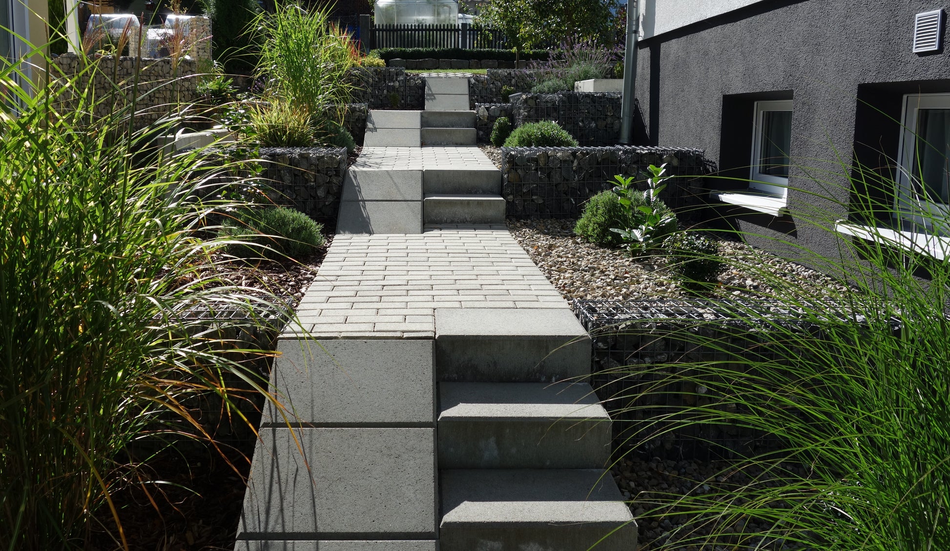 Integrierte Stützmauern und Gartenanlagen