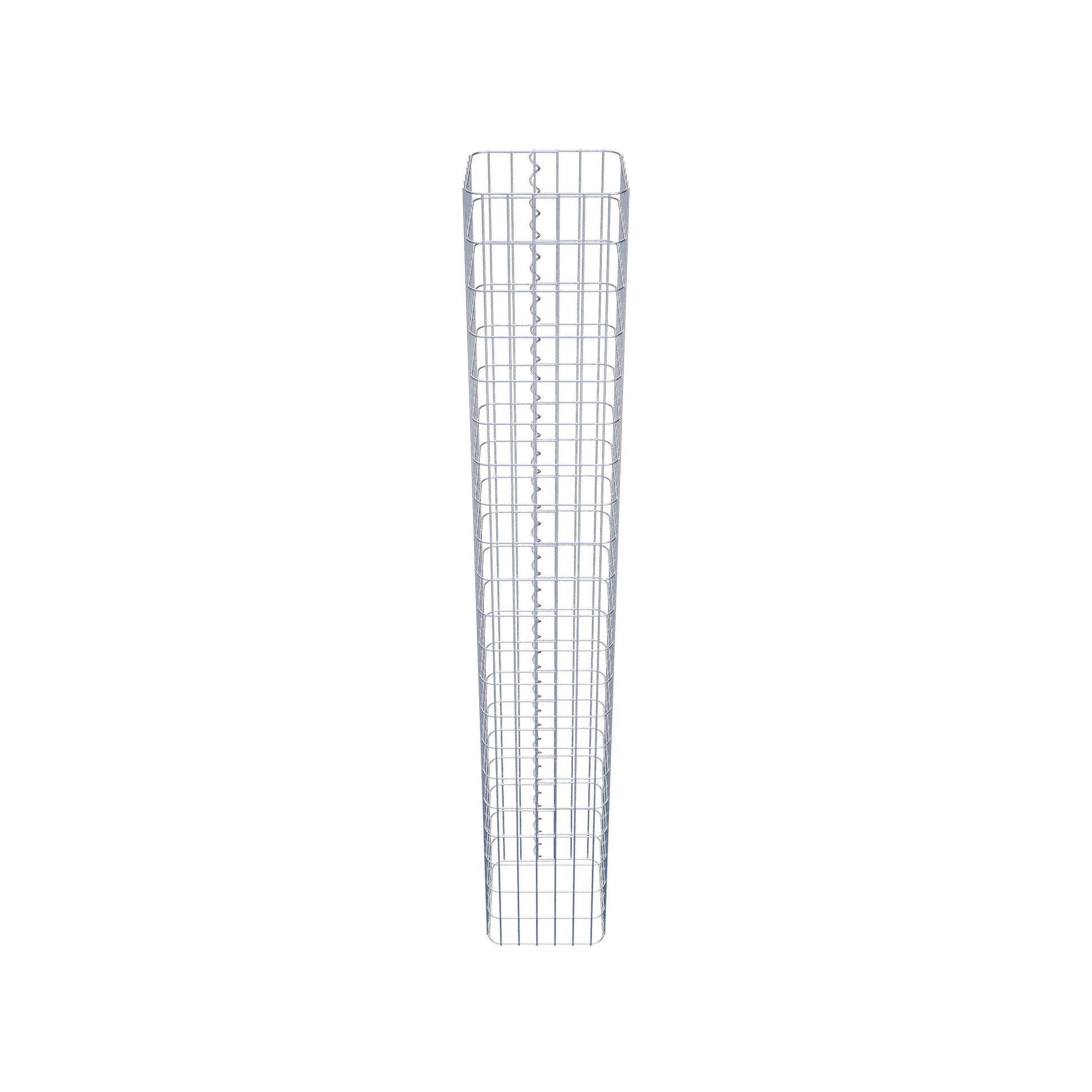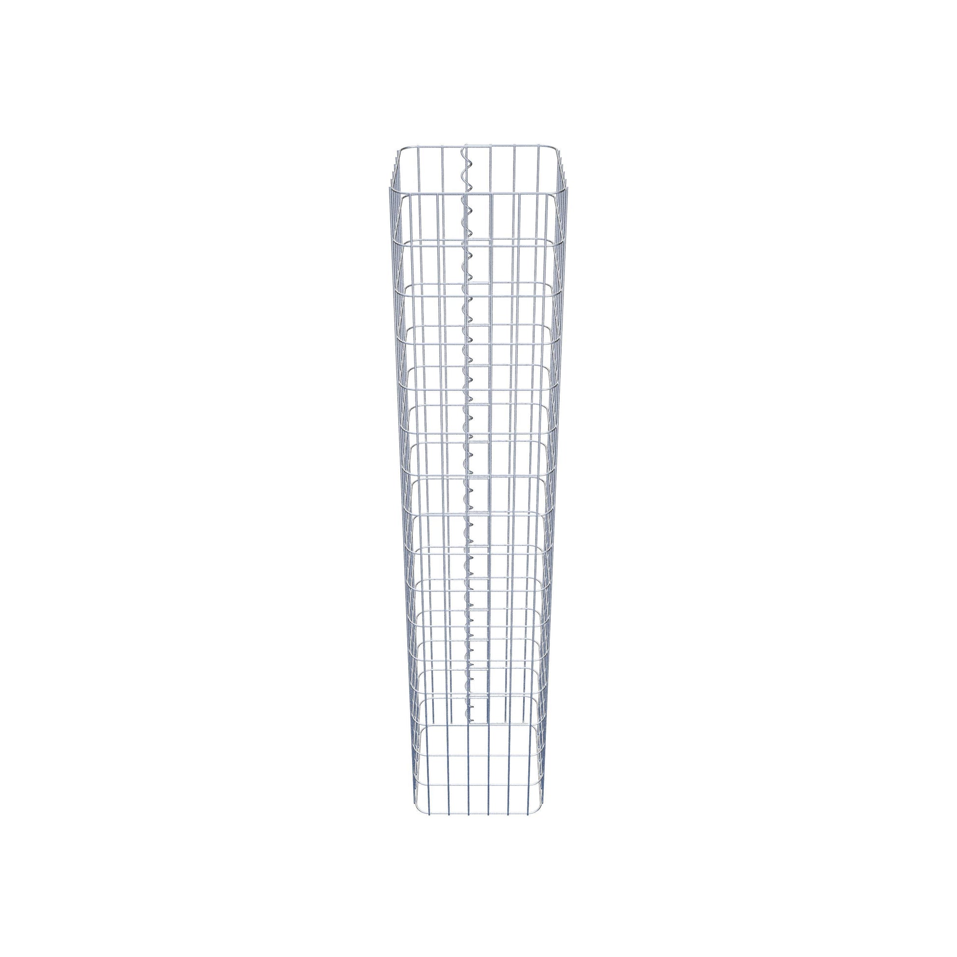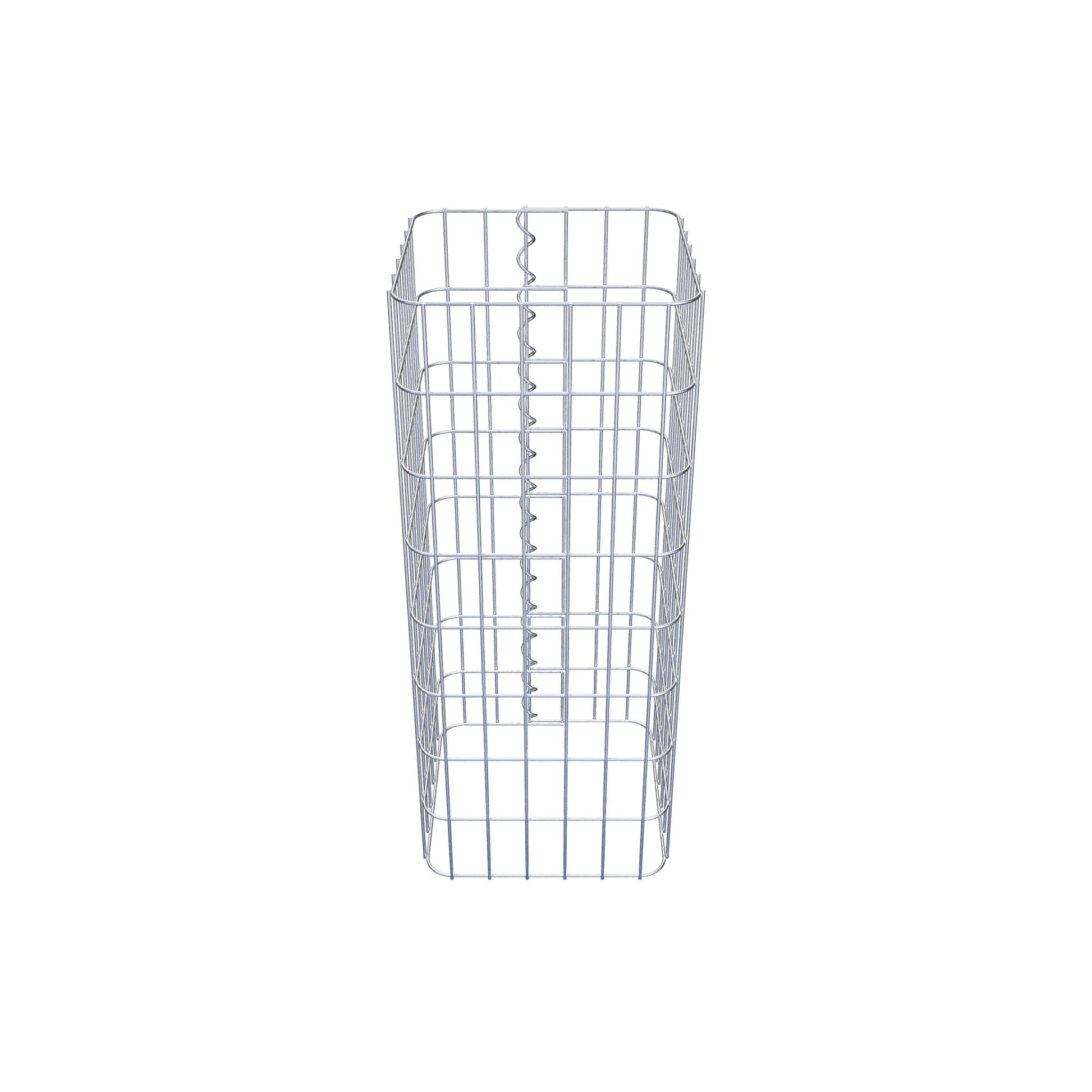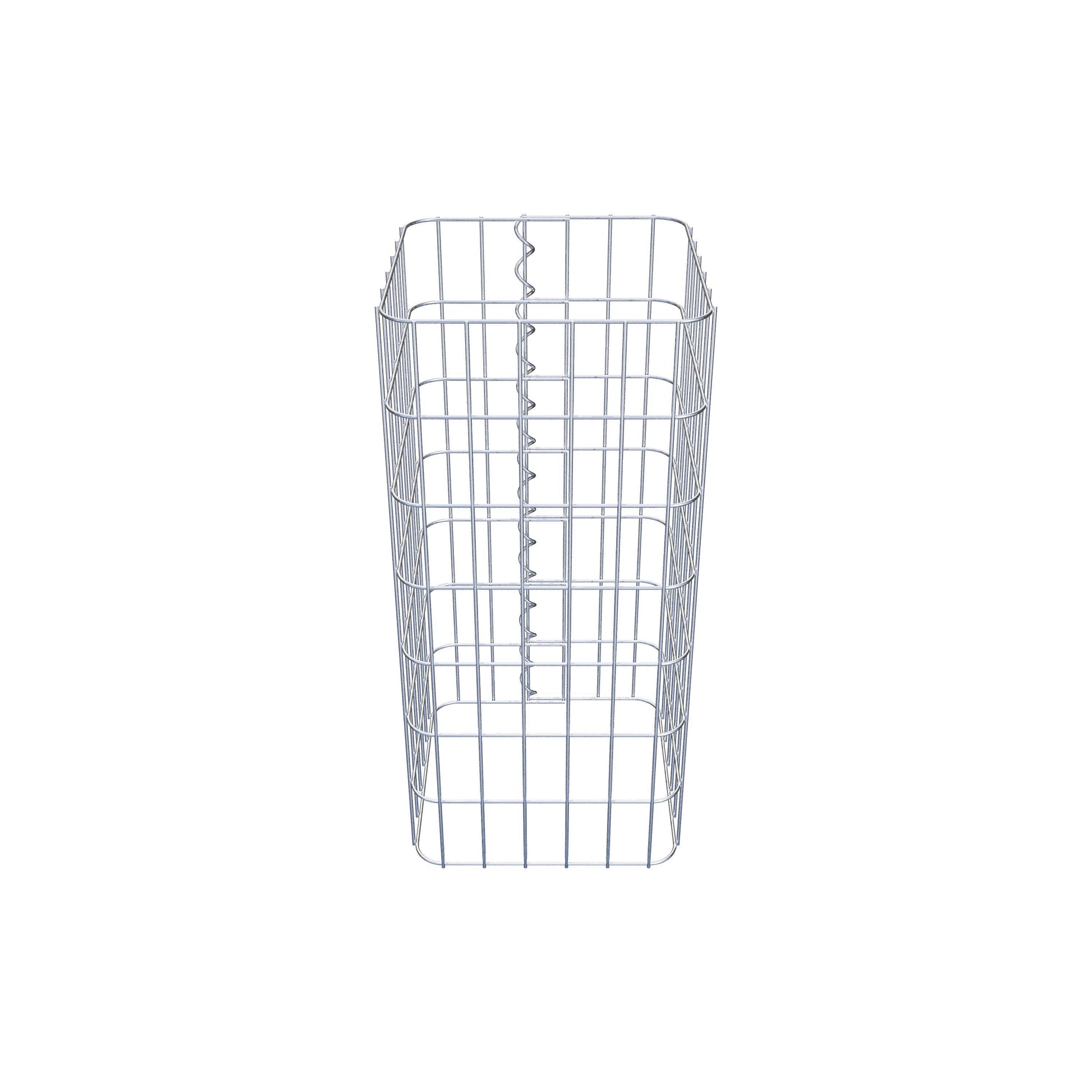 Der seitliche Verschluss erfolgt an der einzigen Überlappungsstelle des Gitters mit einer Spirale, die einfach eingedreht und zusammengedrückt wird. So entsteht eine saubere, sichere und dauerhafte Verbindung. Alternativ kann die Gabionensäule auch mit Klammern verschlossen werden, die separat erhältlich sind. Die Säulen sind nach oben und unten offen – ein Bodengitter oder Deckel ist nicht erforderlich und daher nicht im Lieferumfang enthalten. Bei Bedarf kann ein Deckel zusätzlich erworben werden.