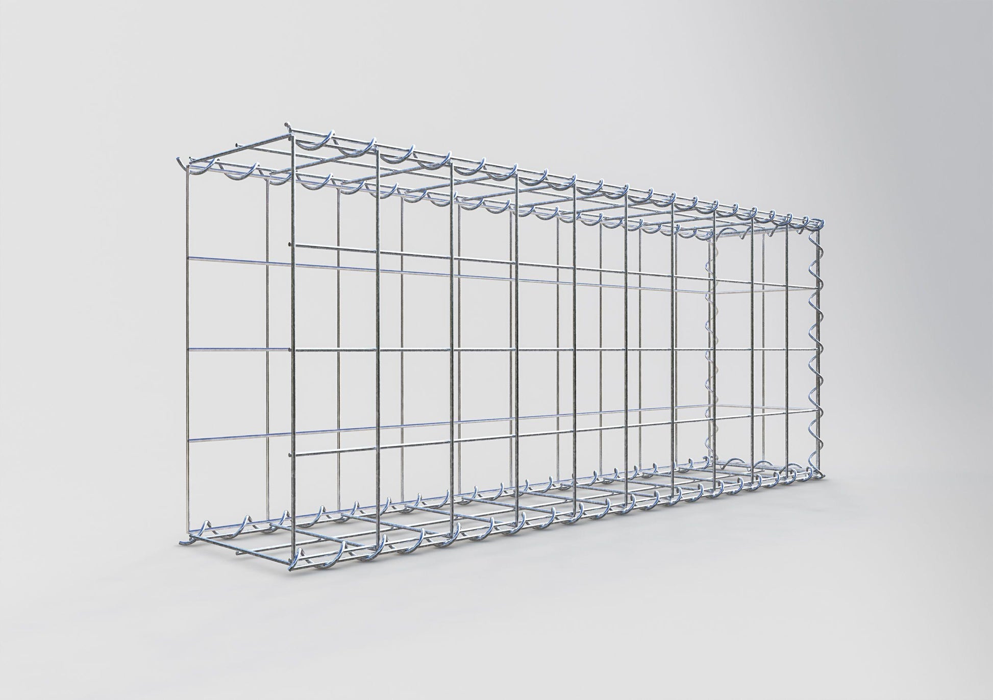 Relie les treillis sans aucun outil - rapidement, facilement et en toute sécurité. Les spirales sont la manière la moins compliquée de construire des gabions stables à partir de nos grillages. Le fil de fer de 4 mm d'épaisseur est plié en forme de spirale et est torsadé à travers les grillages au niveau des bords. Tourne la spirale le long du bord pour que les grillages soient uniformément et solidement reliés entre eux.