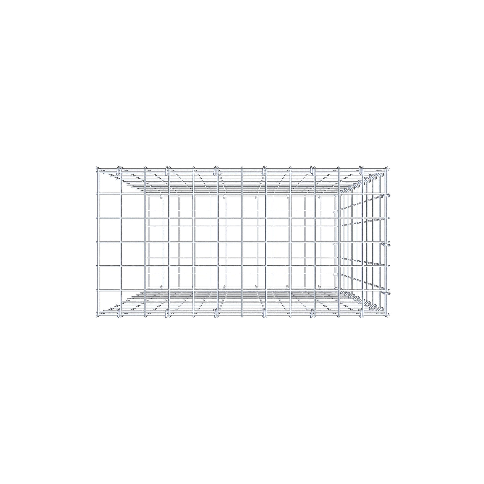 • Remarque : pas de grille frontale propre ni de fermeture de ce côté - le raccordement se fait par la fermeture du premier gabion.