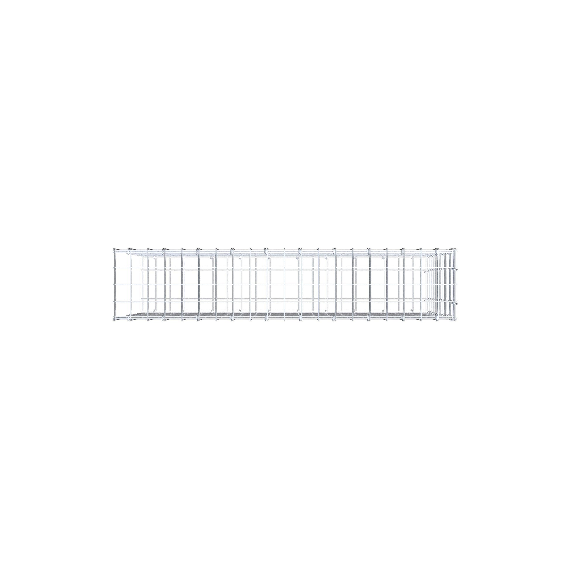 Este gabião não tem grade frontal. Isso permite que seu gabião cresça em comprimento. Observe que o