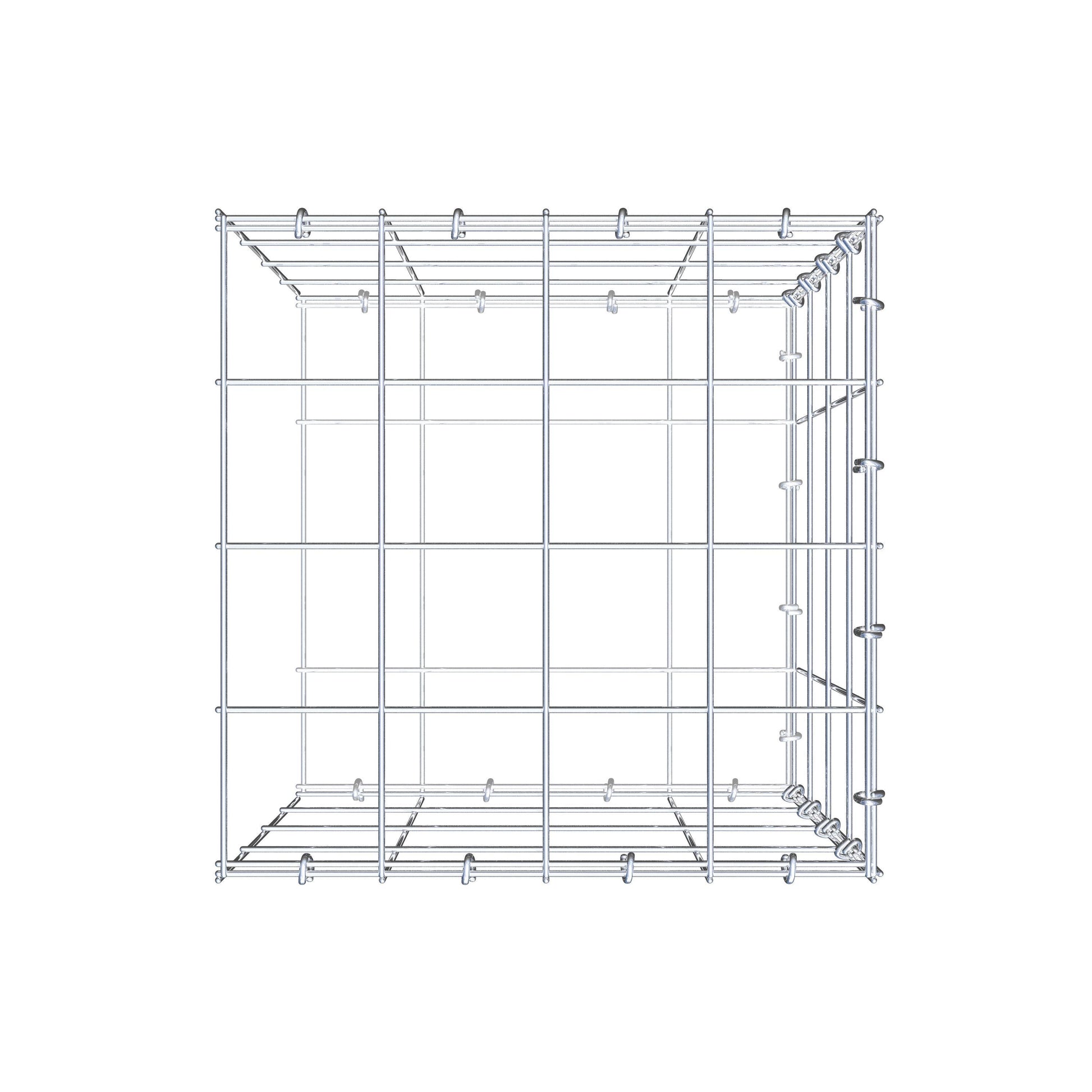 Este gabião não tem grade frontal. Isso permite que seu gabião cresça em comprimento.