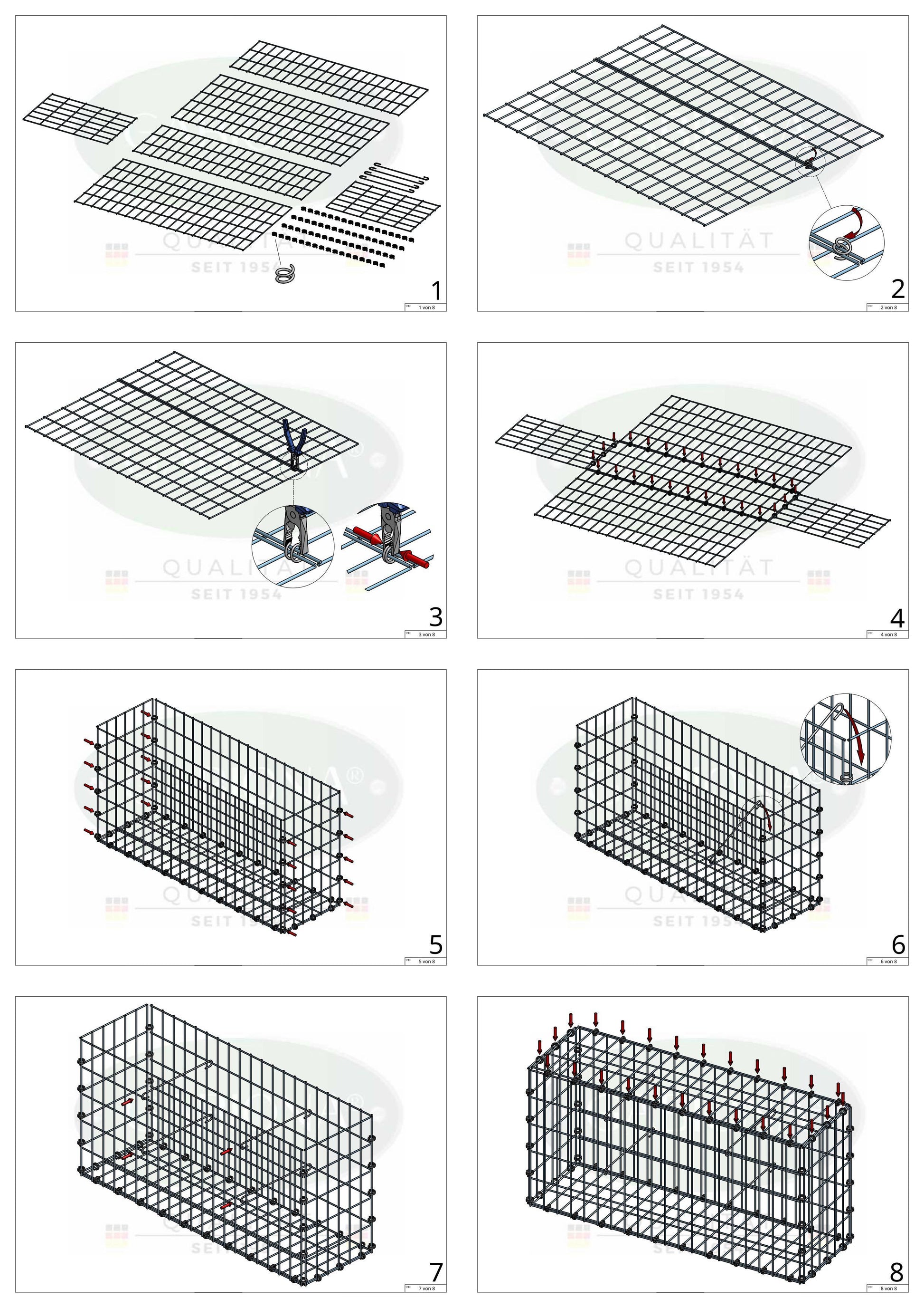 Este gabião robusto foi especialmente desenvolvido para atender aos mais altos padrões de estabilidade, durabilidade e resistência às intempéries. A estrutura é fechada com segurança por meio de vários anéis espirais, que são torcidos por meio de dois fios e fixados com um alicate. Isso garante fácil instalação e uma conexão particularmente estável entre as malhas.