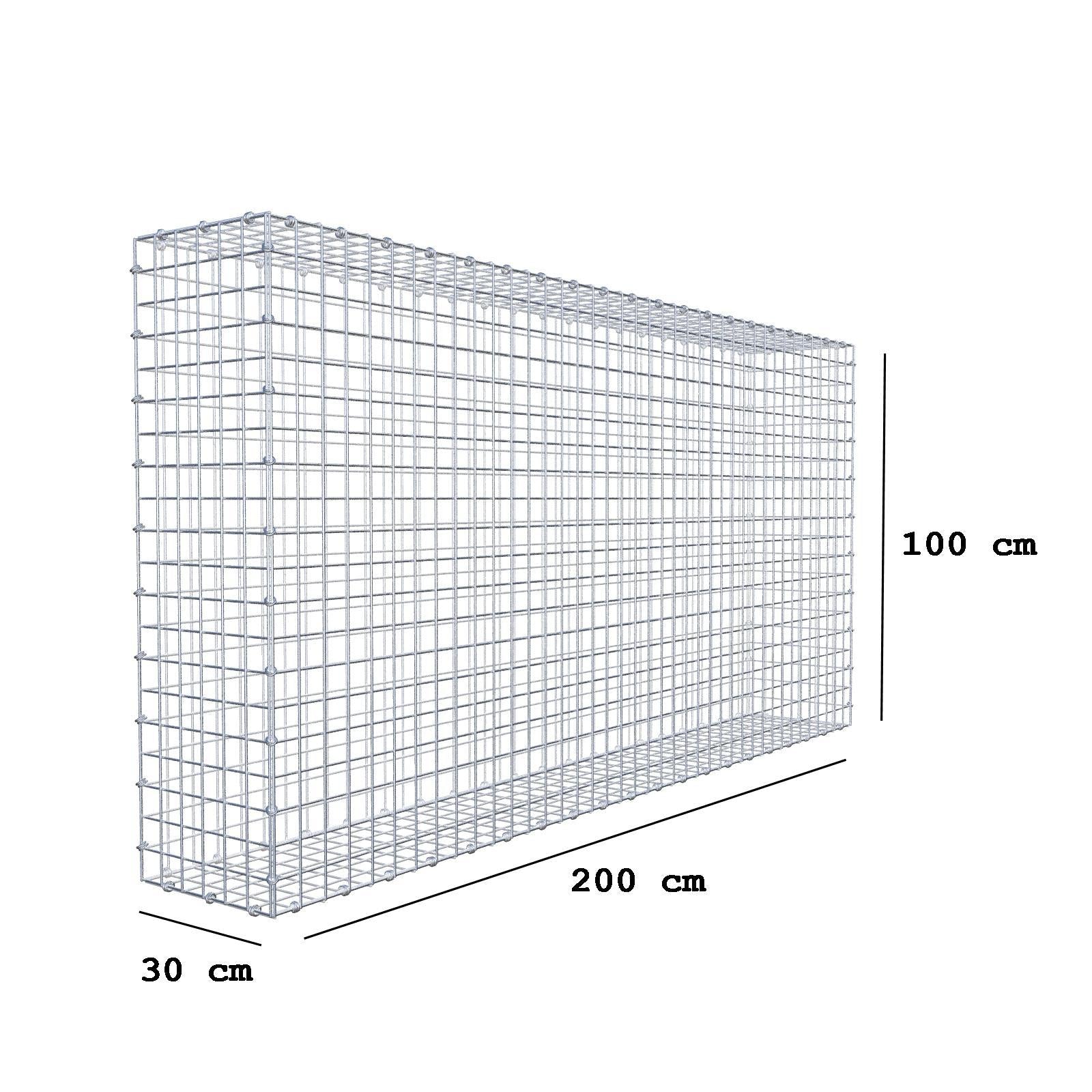 Gabione 200 cm x 100 cm x 30 cm (L x H x T), Maschenweite 5 x 5 cm, Spiralring